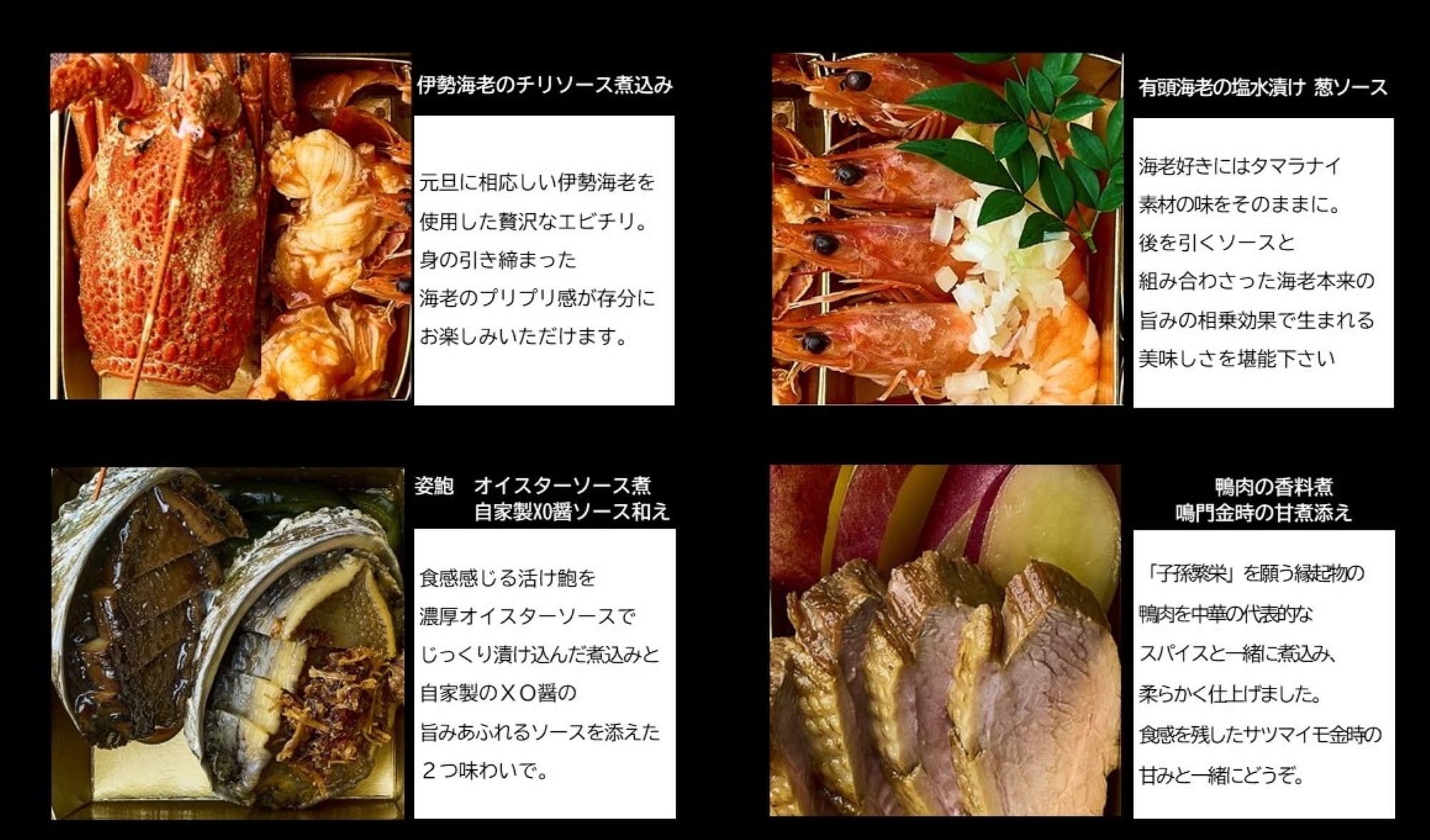 お料理を楽しめる中華の生お節をご用意致しました。